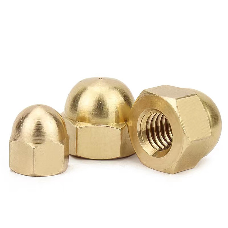 DIN1587 Hex Dome Nuts are often referred to as acorn cap nuts. These nuts have a smooth rounded head that covers the hex nut base. The domed surface protects the bolt threads underneath while providing a finished appearance and may improve safety in certain circumstances. Cap nuts are mainly used for decorative screw connections. The cap nut covers and protects the thread end. They are also used to protect against sharp edges on machines, equipment, fitness equipment and wherever people or objects could be injured or damaged by an exposed thread end.